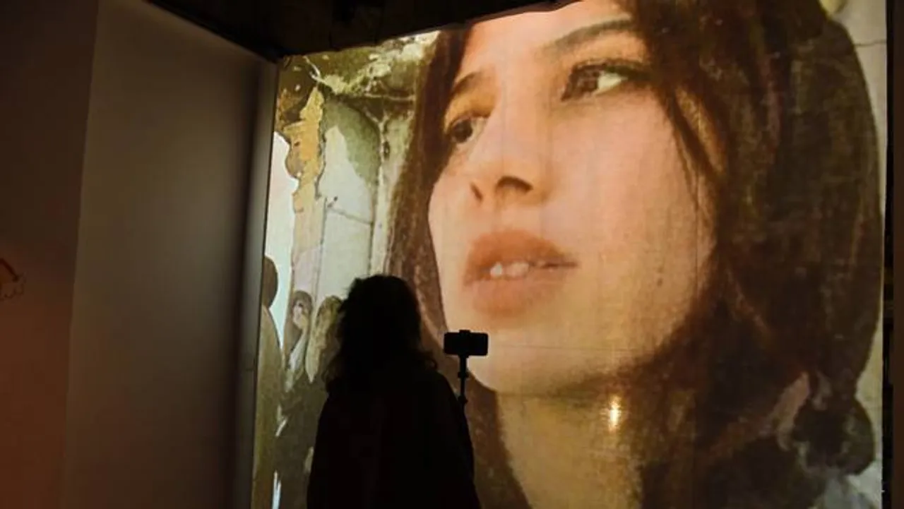 Di dalam sebuah galeri redup di Napoli, orang-orang berkumpul di sekitar kamera yang diarahkan ke sebuah ruangan gelap. Rasa penasaran menarik mereka lebih dekat. Beberapa orang mulai melambaikan tangan, sementara yang lain menyaksikan dengan takjub saat bayangan mereka yang dihasilkan oleh AI muncul di dinding di depan mereka. Seorang wanita muda mendekatkan wajahnya ke kamera dan melihat dirinya berada di sebuah rumah yang hancur akibat bom, dengan puing-puing berserakan di sekitarnya. Dia berdiri di sana sejenak sebelum pergi dengan air mata mengalir, tangannya gemetar menutupi mulutnya.
