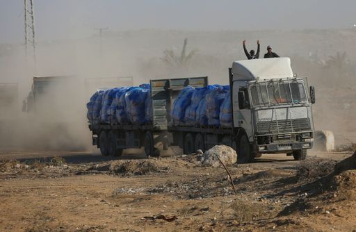Israel mensyaratkan agar bantuan diturunkan dari truk di sisi perbatasan Palestina, di mana bantuan tersebut kemudian harus dikumpulkan oleh PBB dan kelompok bantuan yang sudah berada di Gaza.